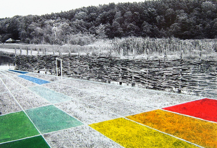 Ölfarbe hinter Glas, das Werk besteht aus 2 Glasplatten mit einer Größe von jeweils 100cm x 70cm